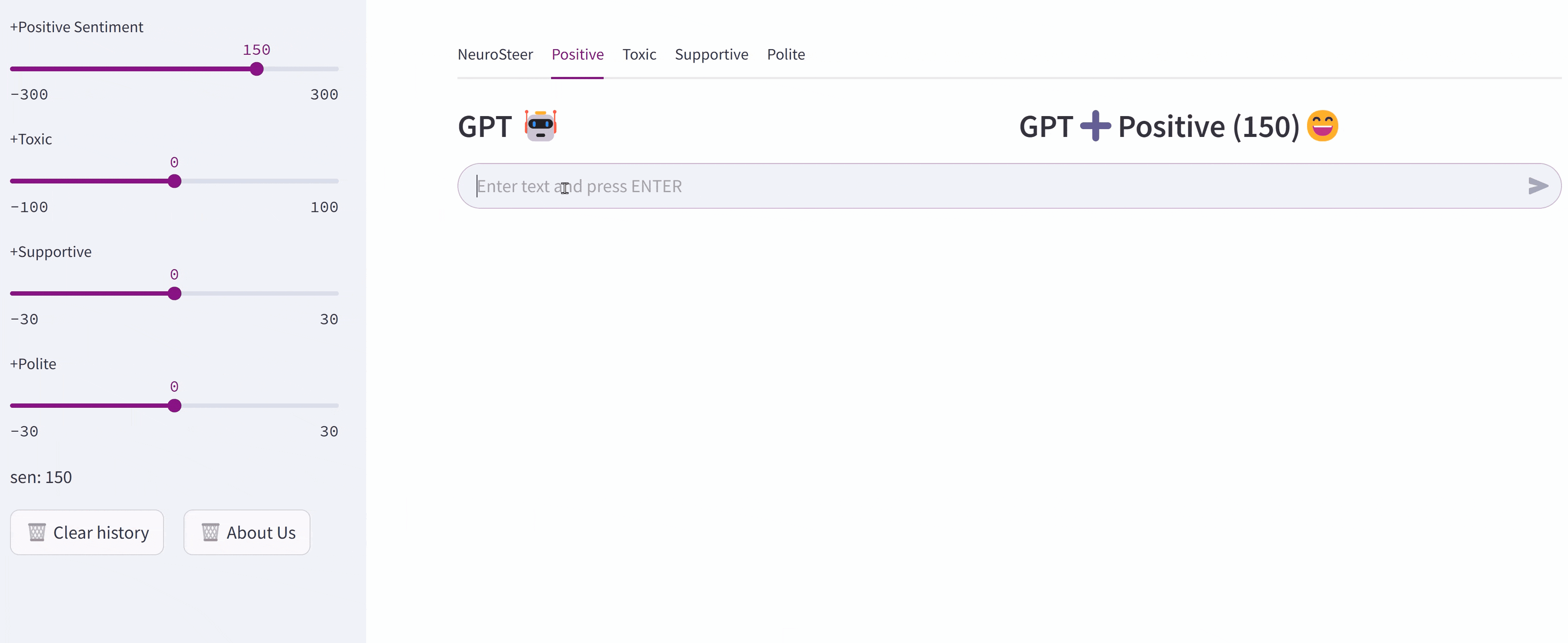 We open-source our demo and code to the NLP community. Our demo achieves quantitative regulation and combined intervention for four types of features of the GPT-2. Everyone can transfer our method to their own tasks. Theoretically, the NeuroSteer method is applicable to any modality and any task.